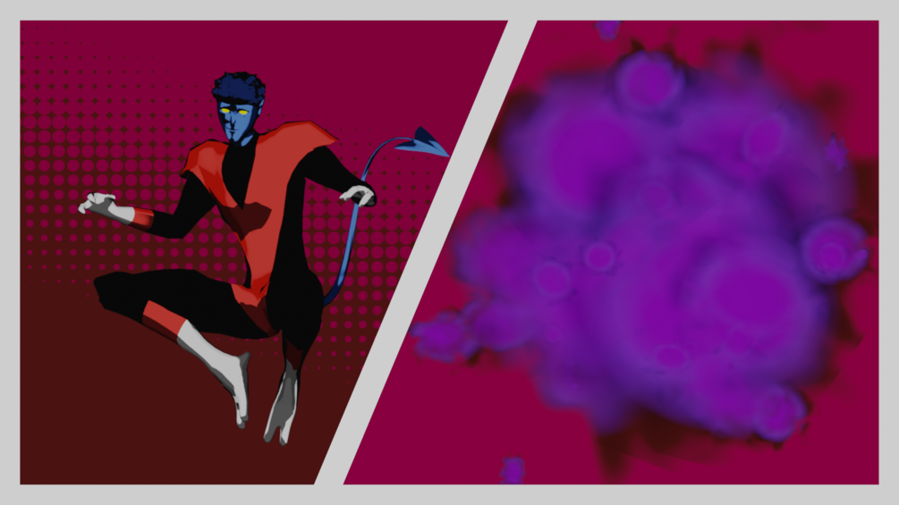 A fully rigged nightcrawler character with a teleportation effect, has full FK/IK controls for arms, legs and tail
